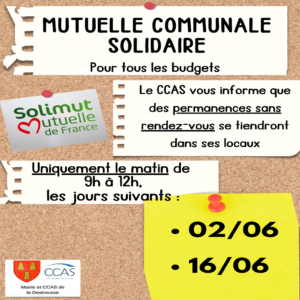 La permanence mutuelle communale solidaire, de 9h à 12h au CCAS, sans rendez-vous :